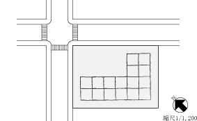 | 1階階高3,800、基準階階高3,200、12m道路側セットバック3,000(柱芯) |